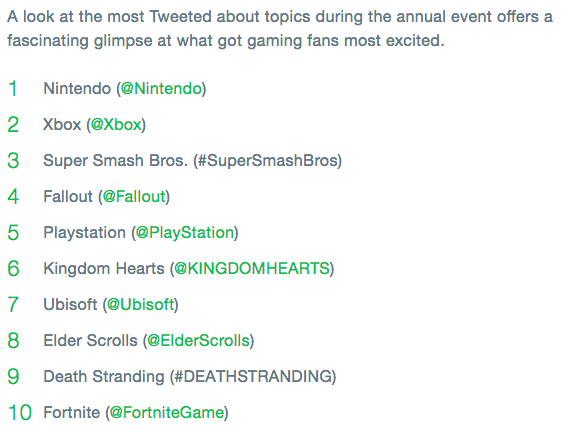 The post itself offers developers a look at which moments from the press conference portion of the event generated the most buzz, and how individual game announcements fared on the rapid-fire social media platform.
