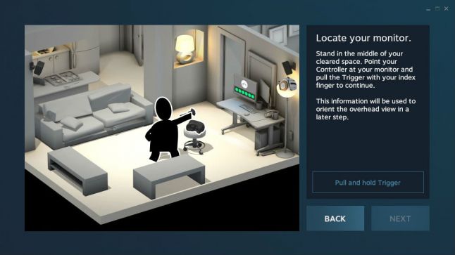 I won’t do a complete “unboxing” of the Vive here, but I will say that the consumer version was surprisingly easy to set up. HTC’s setup tutorial and Valve’s SteamVR Room Setup app are straightforward, and don’t have a load of complicated steps. The room-scale setup (you actually have a choice between a room-scale, or if you have little space, a standing or sitting setup process) involves recognizing the HMD and controllers, identifying where your monitor is (point at it and hold down the trigger), tracing your play space (just walk around the perimeter of the area while holding the trigger), and you’re good to go. Make sure to get that floor calibration right, or else you’ll end up underneath the virtual floor of a slanted room, or about two and a half feet tall.